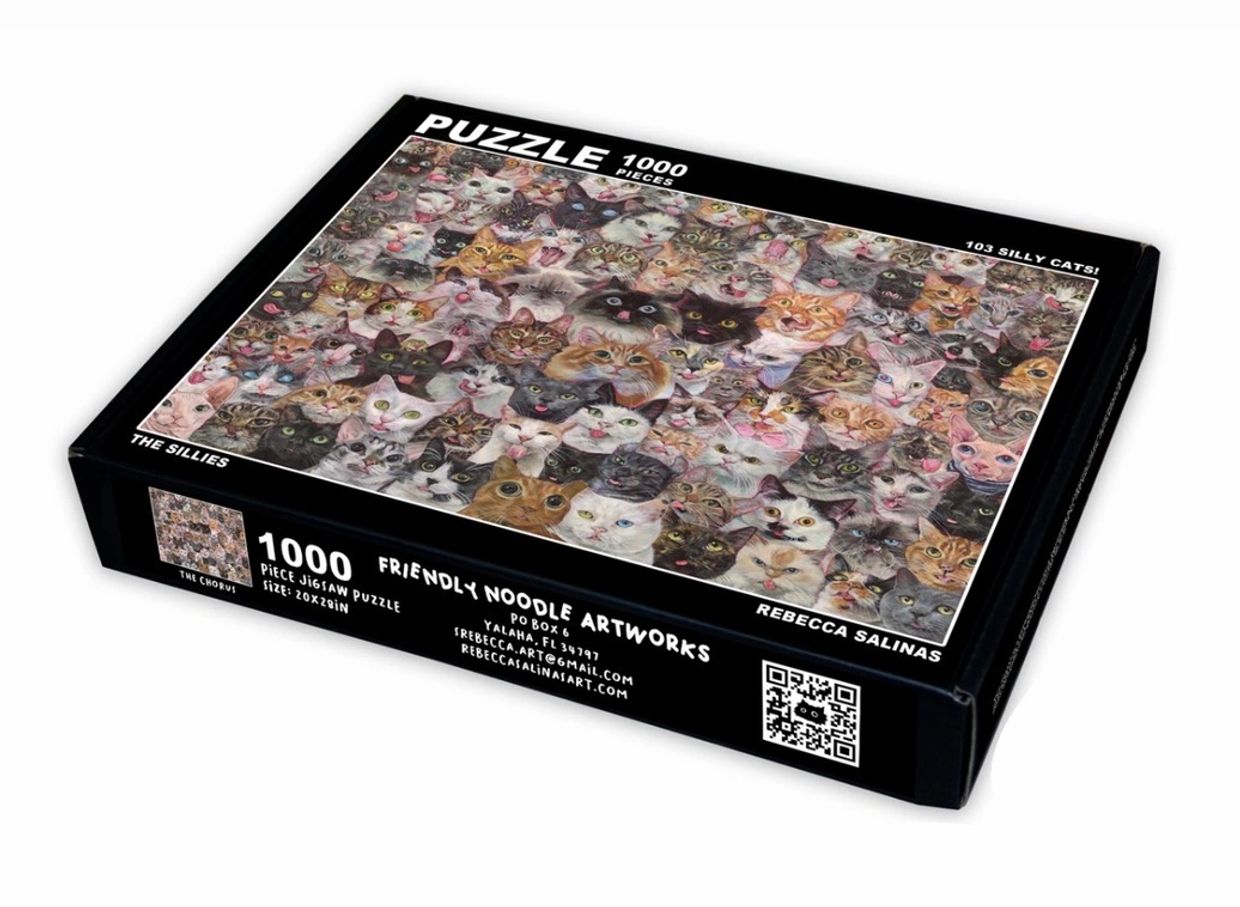 Rebecca Salinas is an artist based in central Florida. She creates paintings of her four cats enjoying life at home. By incorporating social media in her process, she is able to engage with other cat lovers and include their own cats in her group portraits. Her work focuses on capturing the joy that cats bring to people across the world.